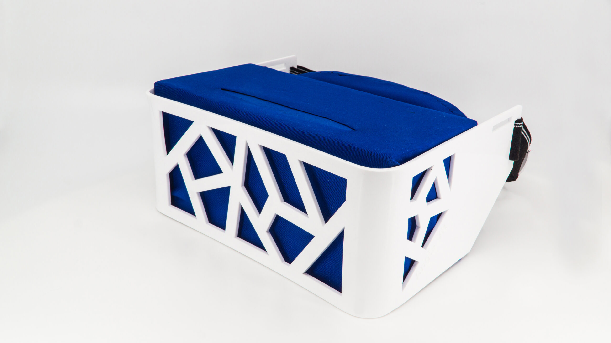 ANGLE VR is a newly designed virtual reality device intended for young adults suffering from depression and anxiety. Majority of VR devices in the current market use dark tones for their main colour theme, whereas ANGLE VR features vibrant coloured fabric and an eye cushion that is customizable to increase the user’s comfort level. Plastic and Fabric were the given constraints for this project. Therefore, ANGLE VR is made of lightweight and cooling materials, acrylic and gel memory foam, which is durable enough for long duration everyday uses.